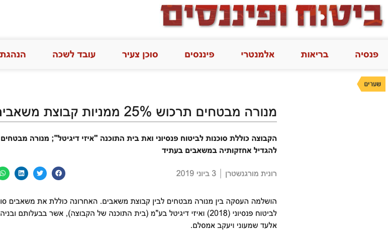 הקבוצה כוללת סוכנות לביטוח פנסיוני ואת בית התוכנה "איזי דיגיטל"; מנורה מבטחים תוכל להגדיל אחזקותיה במשאבים בעתיד